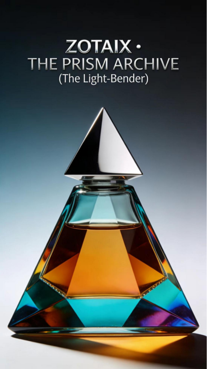 光学:三棱柱构造,二色工程玻璃。颜色随光线频率在琥珀与霓虹青之间切换。达到 $99.9\%$ 的光学透光率。